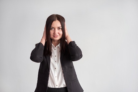 耳をふさぐビジネスウーマン Stock Photo Adobe Stock